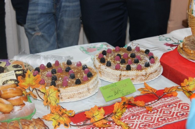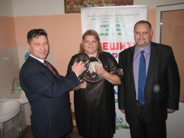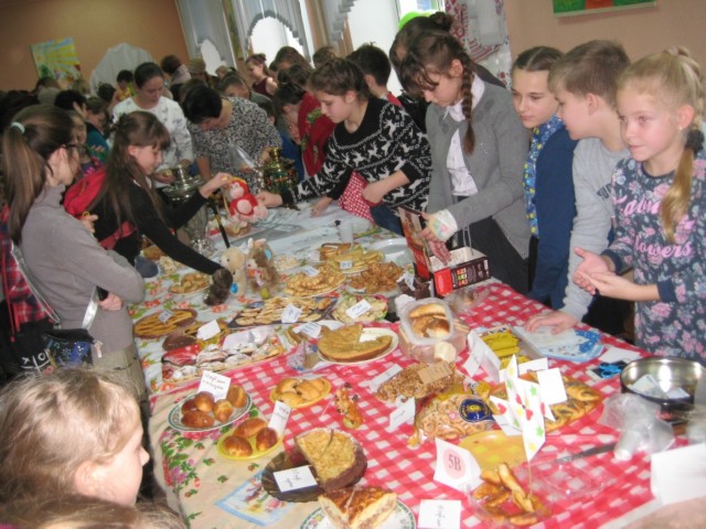 В 11.00 ч. директор школы ИВКИН А.Ю. объявил об открытии благотворительной ярмарки. И началась оживленная торговля… В этот день можно было купить не только «вкусняшки» и детские поделки, но и за символическую плату сыграть в дартс, походить на ходулях, бросить монетку в бочонок медведю, поговорить о ценах на товары по миру с заморским купцом! Учителя с учениками танцевали «барыню» и пели русские народные песни. Какие же замечательные кулинарные традиции бытуют в сельцовских семьях! Блюда фотографировали, авторы с гордостью делились рецептами и раскрывали кулинарные секреты. За символическую плату можно было сфотографироваться и погладить курочку-хохлатку Глафиру, которая пришла на ярмарку со своей хозяйкой – председателем родительского комитета 6 класса ПОНКРАШКИНОЙ С.В.