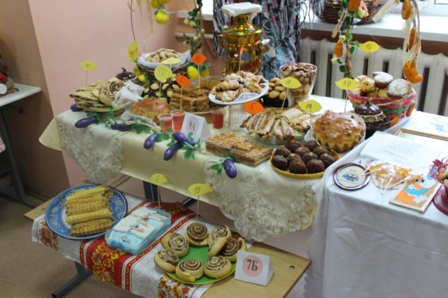 С утра на классных часах подвели итоги 1 триместра, вручали грамоты отличившимся в учёбе и общественной работе, навели порядок в классных комнатах, поговорили о режиме дня и безопасности на каникулах. А потом ребята стали готовится к ярмарке: оформляли свои столы, одевались в народные сарафаны и русские рубахи.