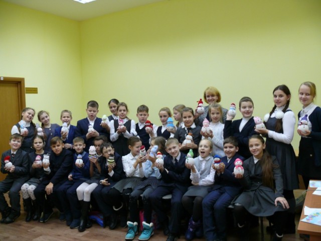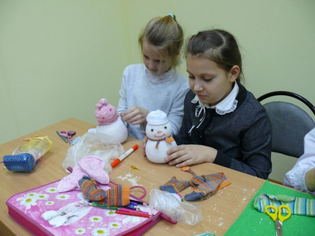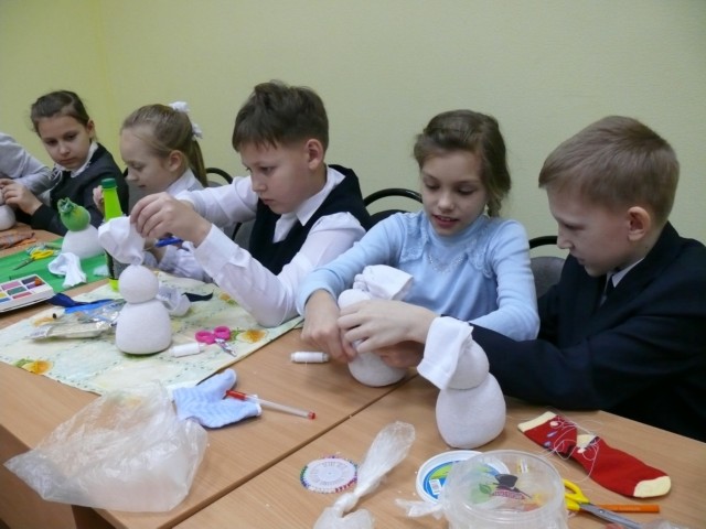 19 декабря в резиденции Сосновичка классный руководитель 4Б класса Данченкова Е. С. показала своим ребятам мастер-класс по изготовлению Снеговика. Ребята активно включились в работу: резали носки, насыпали в них крупу, приклеивали разноцветные глазки и шили забавные шапочки.