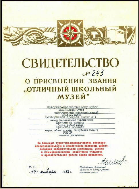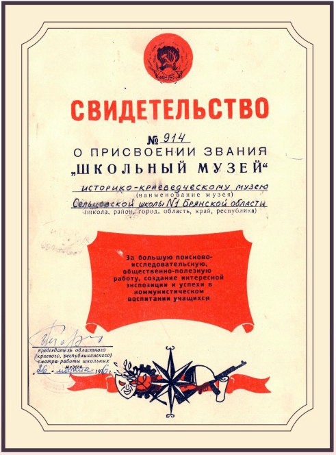 Историко-краеведческий музей Сельцовской средней школы №1 открыт 20 апреля 1967 года.