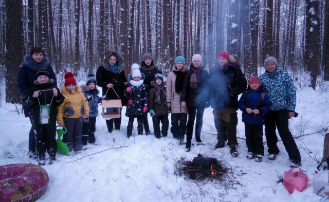 В один из таких погожих, морозных дней 21 января, ребята 1А класса (кл.руководитель ПЕНЗИНА Д.В.) вместе с родителями отправились в лес, на стрельбище. И главной задачей было позаботиться о братьях наших меньших – развесить заранее приготовленные кормушки, а заодно и покататься с горки.