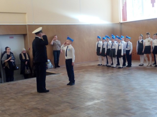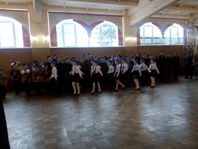 Учащиеся показывали строевые приемы, а также прохождение строем с песней.