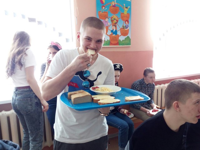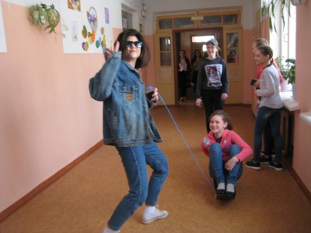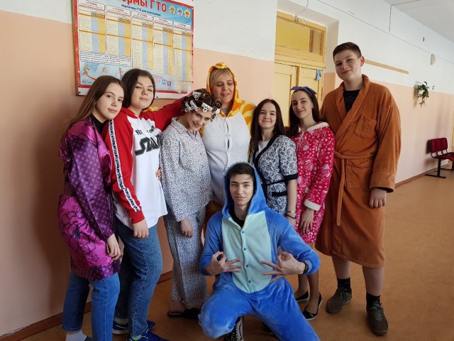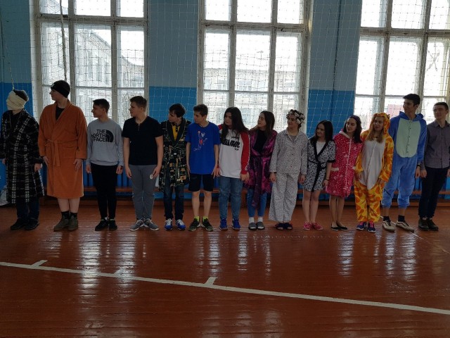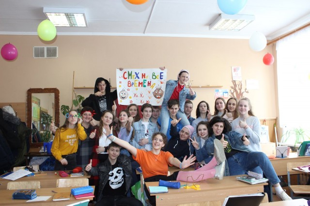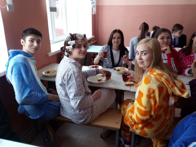 С утра в школе звучала музыка, в коридорах можно было увидеть клоунов, учеников с цветными шариками, старшеклассников в домашних халатах и тапочках, девочек с забавными прическами и разрисованными лицам. В столовой звучали «Вкусные кричалки».