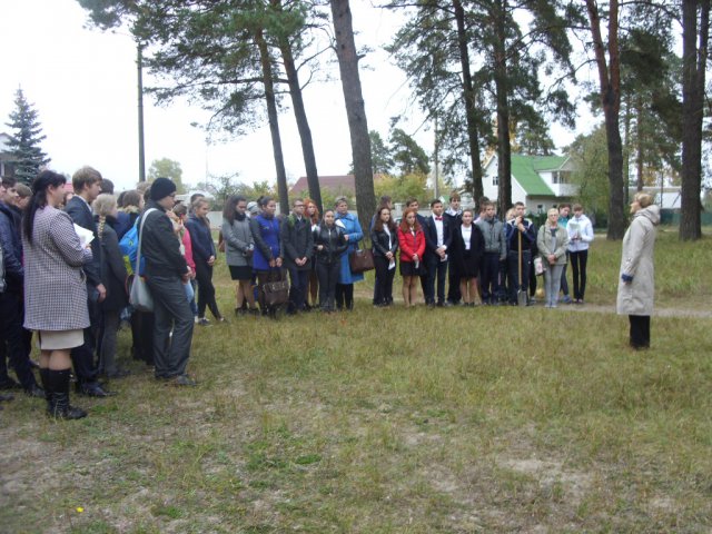 После высадки деревьев была совершена экскурсия по аллее. Юные экскурсоводы рассказывали присутствующим о Герое, в честь кого посажено дерево.