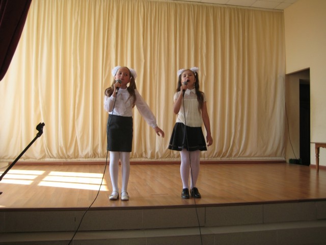 На конкурс были представлены песни «Светит солнышко для всех» (вокальная группа ГАЛКО Екатерина и ХИЖЕНКОВА Дарья 2 класса) и «Нарисую мир» (КЛЮЗИН Матвей 3 класс)