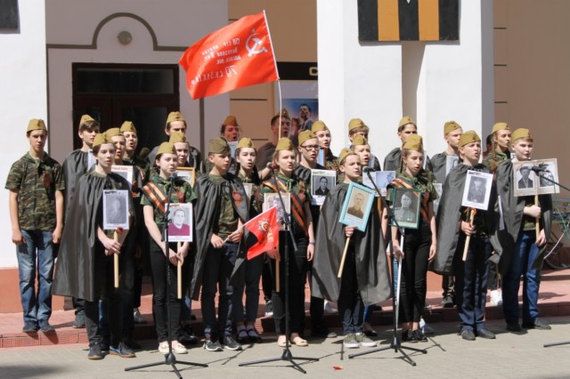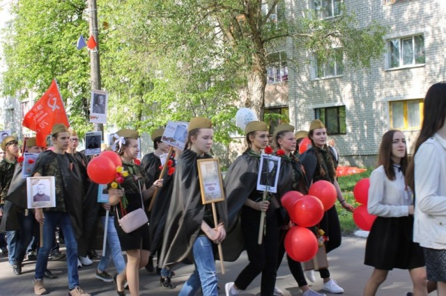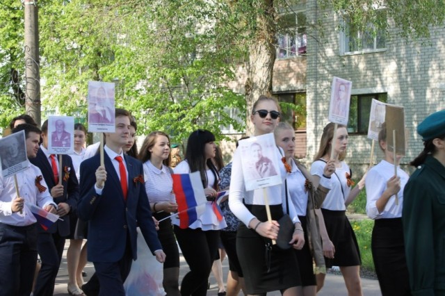 9 Мая учащиеся 7-11 классов приняли участие во всероссийских акциях «Парад поколений» и «Бессмертный полк». Традиционно в этот день на стадионе проводилась легкоатлетическая эстафета среди учащихся школ города. Наша команда 7-8 классов в упорной борьбе завоевала 1 место, а команда 9-10 классов - 2 место.