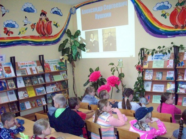 Отряд №5 посетил центральную детскую библиотеку, где ребята познакомились с творчеством поэта, проведена викторина по сказкам, игра «Найди пару». Дети вспоминали полюбившиеся стихи, а затем посмотрели мультфильм «Сказка о рыбаке и рыбке».