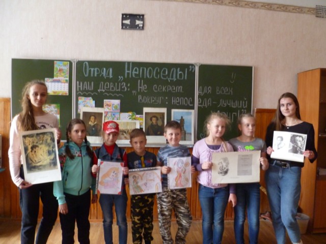 В рамках Пушкинского дня, 6 июня, в школьном лагере «Лягинец» было проведено мероприятие «Великий поэт великого народа». Вожатые познакомили с интересными фактами биографии А.С.Пушкина, вспоминали сказки и читали любимые стихи поэта, рисовали сказочных героев. Была проведена викторина по творчеству А.С.Пушкина «Сказка ложь, да в ней намек…»