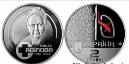 Накануне 100-летнего юбилея Авиловой О.М. национальный банк Украины выпустил посвященную ей памятную монету из серии "Выдающиеся личности Украины".