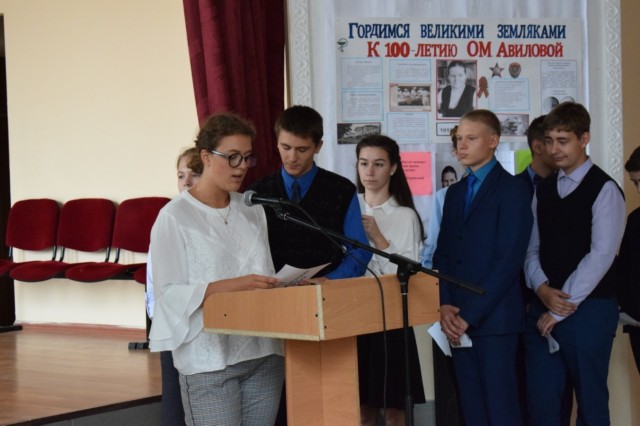 Встреча началась с выступления ребят, которые познакомили собравшихся с биографией Авиловой Ольги Матвеевны.
