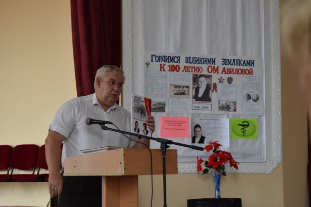 С.Н.Фетисов показал презентацию об Ольге Матвеевне, и более подробно расказал о жизненном пути замечательного хирурга и ее работе на Брянщине, подарил музею и школьной библиотеке свои книги о выдающихся врачах Брянской области и пригласил посетить музей здравоохранения и медицинской науки Брянщины.