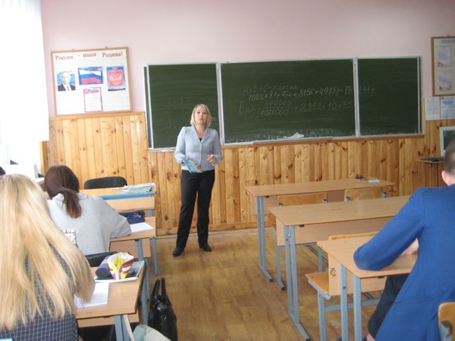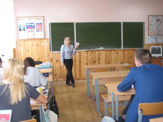 В этот день начальник пенсионного фонда РФ в г.Сельцо Быконя Н.В. провела тематическое занятие с выпускниками школы.