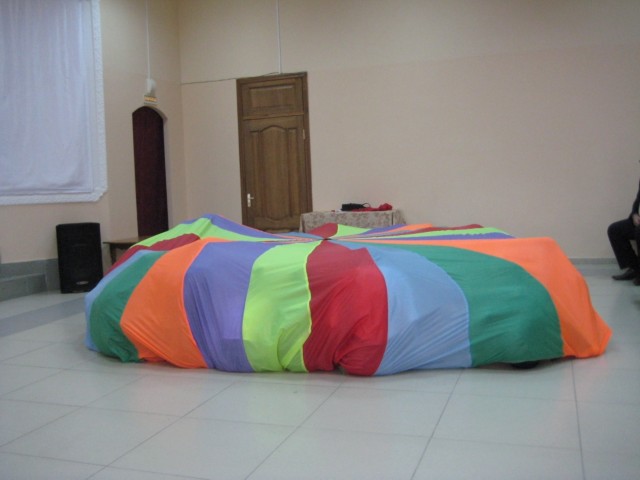 С этой целью были проведены информационно-просветительское занятие и игровая мастерская, в ходе которых дети разобрали понятие «герб», обсудили основные элементы герба г.Сельцо; в ходе игр с парашютом они «путешествовали» по России, называя известные им города и реки.