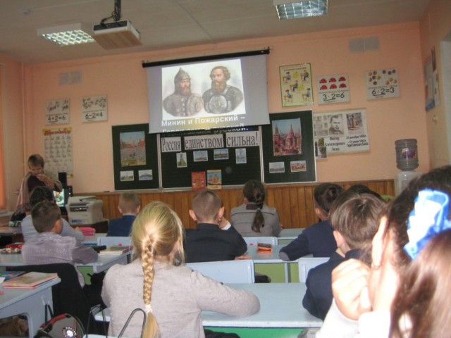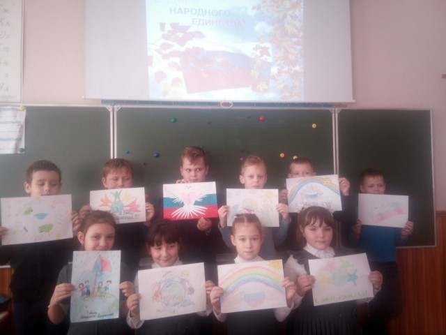 В честь дня народного единства в школе были проведены мероприятия: классные часы «Вместе мы сила», «Во славу тех героев..», выставка рисунков «В единстве сила!».