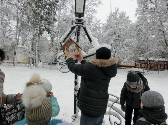 Учащиеся начальной школы приняли активное участие в акции. Совместно с родителями ребята изготовили кормушки, а затем развесили в сквере, на детском городке, а также у своих домов.