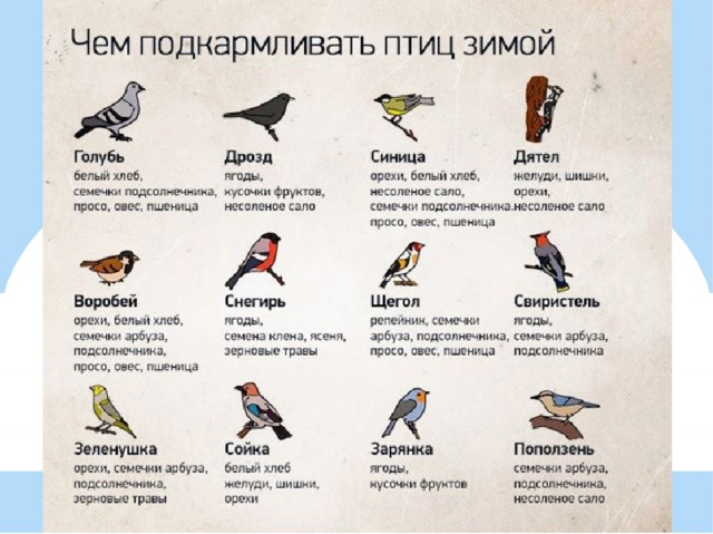 Зима для пернатых – самая тяжелая пора. В это время им часто бывает трудно добыть корм, особенно, когда оттепели чередуются с морозами и все покрывается ледяной коркой. Птицы, особенно молодые, не успевают за короткий зимний день найти достаточно корма и гибнут от голода. Чтобы помочь зимующим птицам, необходимо постоянно подкармливать их в течение зимы.