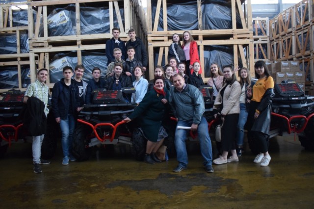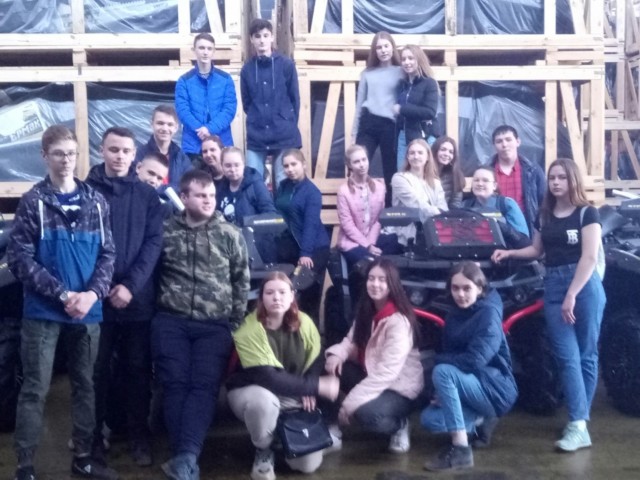 Экскурсию по заводу провел зам. начальника отдела технического контроля Василий Клишин, который рассказал об особенностях создания выпускаемой продукции: велосипедов, квадроциклов, снегоходов. Учащиеся и учителя смогли увидеть все стадии создания известной техники из Жуковки - от поступления заготовок до испытания готовых машин и отгрузки продукции потребителям.