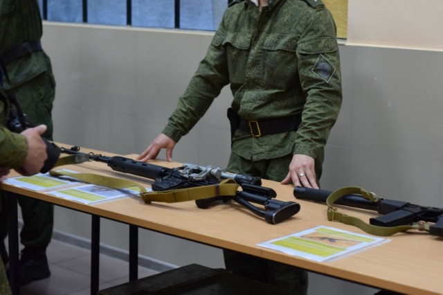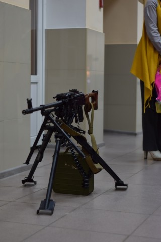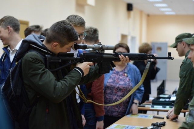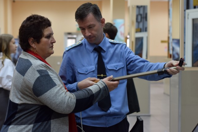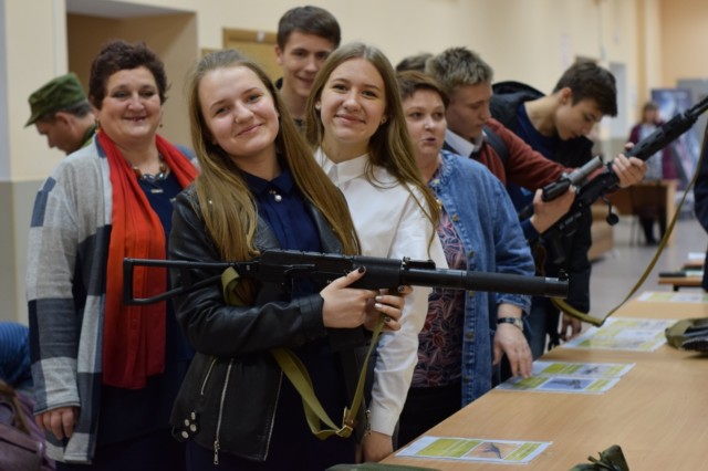 Пришедшие на мероприятие учащиеся, с интересом изучали выставку, организованную пограничниками: предметы вооружения, технические средства пограничного контроля и, конечно же, само оружие, в том числе автоматы, пулемёт, пистолеты.
