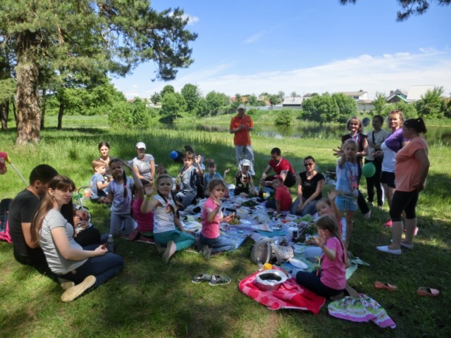 1 июня – это прекрасный повод организовать веселый праздник для детей. И такой праздник был проведен родителями учащихся 1Б класса. Ранним утром, встретившись у школы со своим учителем Данченковой Е.С., ребята вместе с родителями отправились в сторону профилактория. В Парке памяти сделали остановку, прошлись по кленовой аллее героев … Конечной остановкой стал берег озера, который оказался еще и «Островом сокровищ». Здесь первоклассникам предстояло пройти ряд испытаний, которые подготовила Сурикова Т.В. – пройти через лабиринт, спрятаться в палатке, участвовать в интеллектуальном конкурсе, при этом, не забывая говорить каждому комплименты…