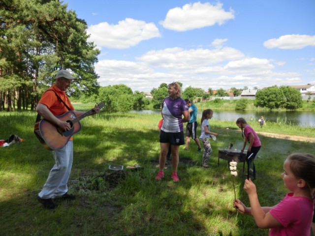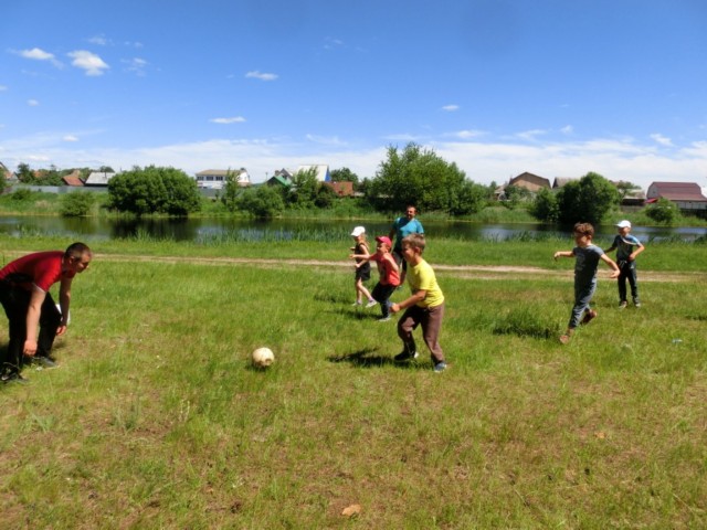 А еще в это день играли в футбол, и каждый старался забить гол в ворота, в которых стояла Пестрецова Н.И., пели под гитару детские песни вместе с Поляковым С.С. , а затем повязали цветные ленты тем, кому были благодарны за этот день…