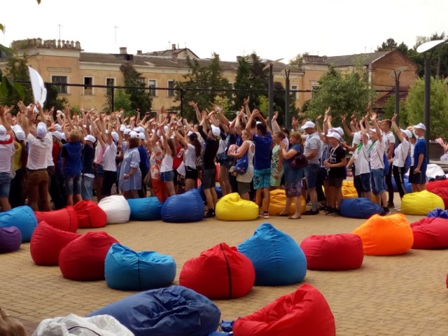 В конце участники организовали флешмоб в форме сердца. Красочное зрелище засняли на квадрокоптер.