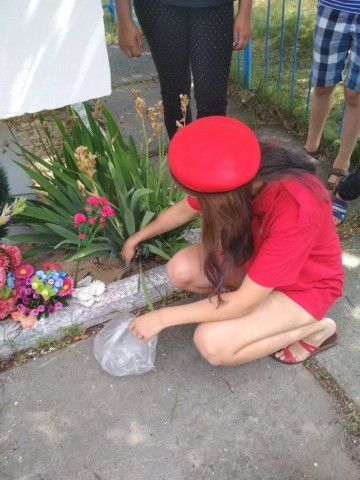 Юнармейцы школы приняли участие в акции и взяли три горсти земли с места гибели Анатолия Коршунова – партизана-подрывника отряда им. А.И.Виноградова.