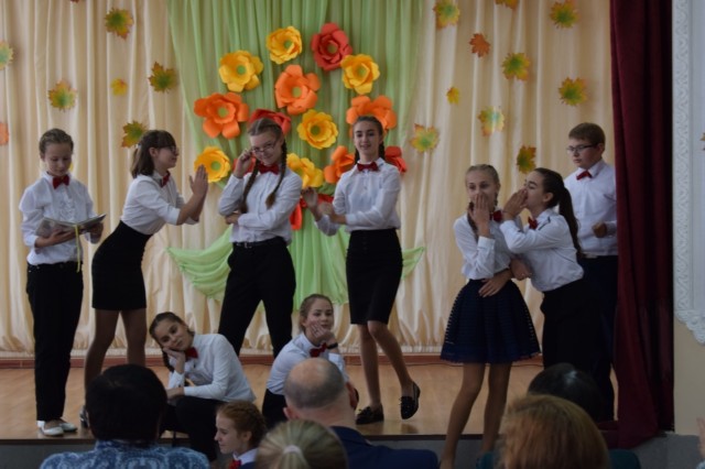 В этот день с самого утра в школе звучала музыка, а выпускники встречали любимых учителей и дарили им цветы. Вся школа была празднично оформлена к этому событию.