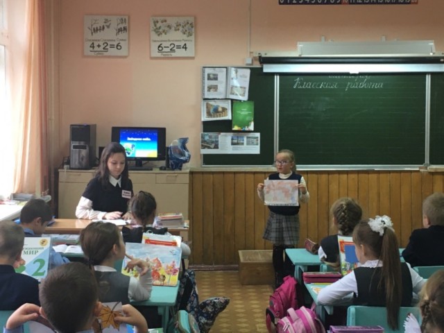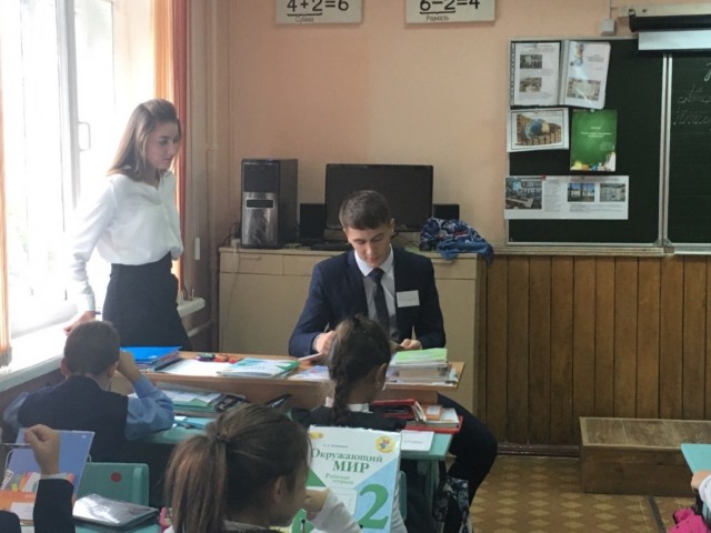А когда прозвенел звонок на урок, то учащиеся 10 и 11 классов в качестве учителей отправились в классы, потому что в этот день в школе был «День самоуправления».