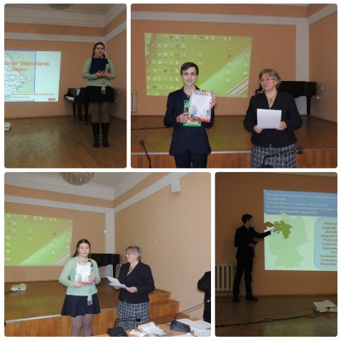 14 декабря учащиеся 9 класса Моисеев Владислав и Знаменская Алёна приняли участие в финале конкурса презентаций на немецком языке «Федеральные земли Германии», который проходил в Брянской областной научной универсальной библиотеке (БОНУБ) им. Тютчева. Конкурс был организован Немецким читальным залом для учащейся молодежи Брянска и области. Ребята выступили достойно. Из 17 представленных работ Моисеев В. занял 1 место, а Знаменская А. - 3 место.