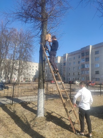 25 марта силами учащихся 7-8 классов был проведен трудовой десант на территории школы, а для пернатых повесили скворечники.