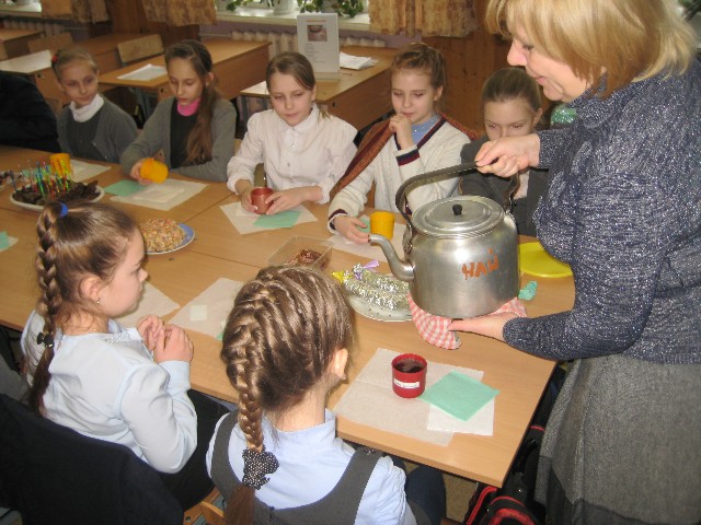 К этому уроку ребята готовились целую неделю: вместе с мамами и бабушками искали рецепты приготовления пирожного «Картошка», шоколадного печенья, кондитерской колбасы.