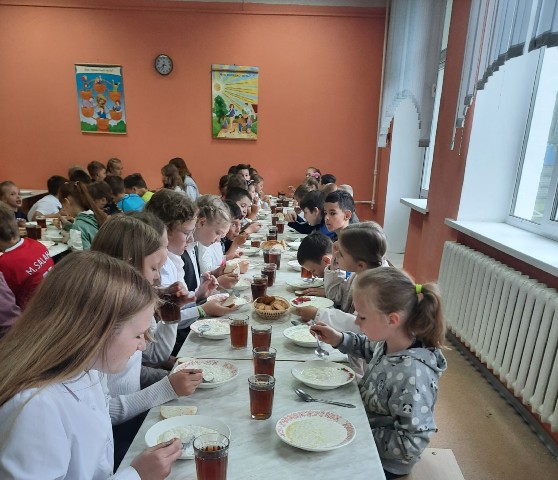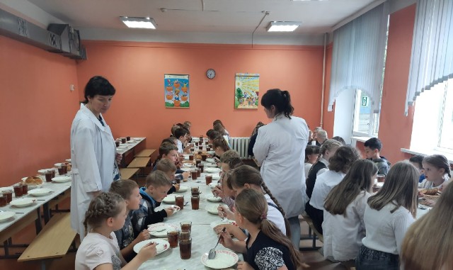 Сегодня комиссией родительского контроля была проведена проверка организации качества питания в школьном лагере "Лягинец". В ходе проверки было установлено, что блюда соответствуют утвержденному меню, качество обработки продуктов соответствует предъявляемым требованиям, пища разнообразная и соответствует возрастным потребностям детей. Все гигиенические требования при работе в столовой выполняются.