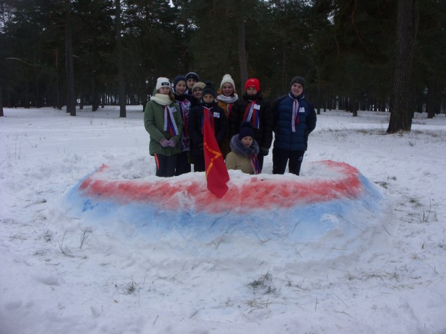 Наша команда стала победителем в номинации «Неприступная крепость» по итогам этапа строительства крепостей: сооружение было самым интересным, стены крепости были покрашены в цвета Российского флага, а саму крепость окружал глубокий ров.