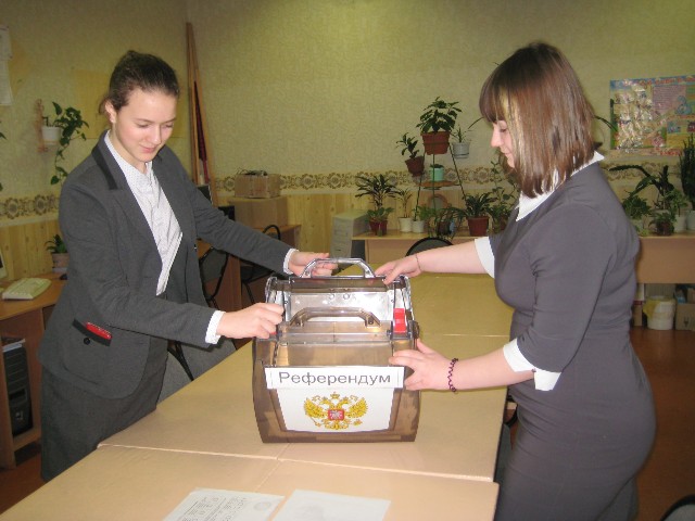 В этот день ребята смогли познакомиться с процедурой голосования, работой с бюллетенем. А по окончании Референдума избирательная комиссия подвели итог, результаты голосования внесены в итоговый протокол.