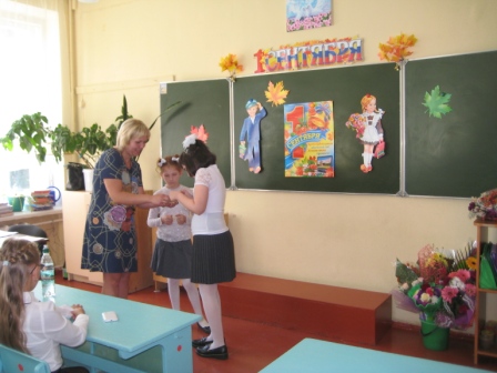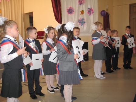 А для первоклассников в актовом зале было проведено мероприятие «Посвящение в первоклассники», которое подготовили учащиеся 11 класса (кл. рук-ль КОРОЛЕВА Марина Николаевна)