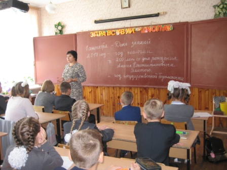 - для учащихся 5-8 классов проведены классные часы, посвященные 200-летию со дня рождения А.К.Толстого. Ребята познакомились с творчеством писателя, читали стихи А.К.Толстого, совершили виртуальную экскурсию в с.Красный Рог.