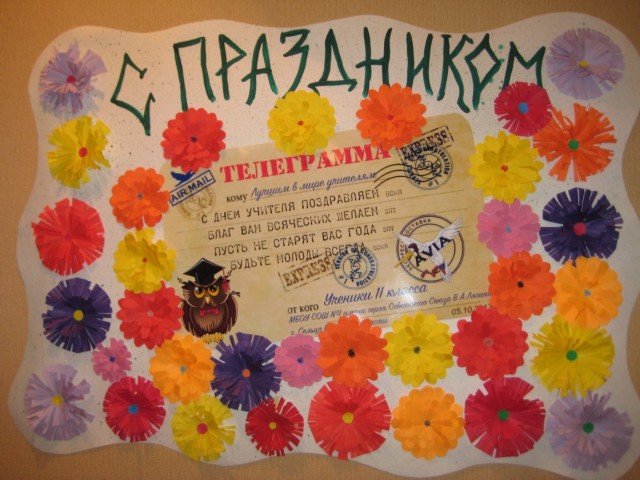 5 октября в нашей школе прошел праздник «День Учителя». С самого утра наших любимых учителей поздравляли ребята и дарили им букеты осенних цветов. Вся школа была празднично оформлена к этому событию.