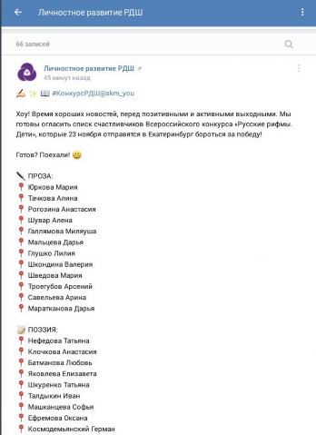 27 апреля Российское движение школьников (РДШ) запустило творческий проект Литературного патриотического фестиваля «Русские рифмы (номинация Дети)»