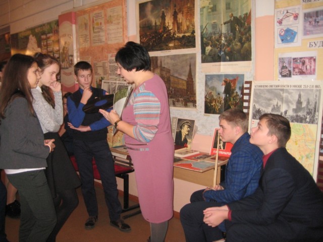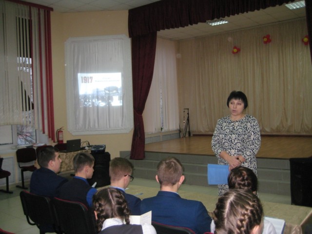 «События 1917 года в истории России и мира» - под таким названием 8 ноября прошла публичная лекция для учащихся 9-10 классов, которую провела учитель истории АНИСОВА П.П. Ребята подготовили сообщения о февральском и октябрьском этапах революции 17 года, познакомили с высказываниями писателей – современников об этих событиях. В заключении посмотрели видеофильм «Брянская земля в начале ХХ века. Октябрьская революция»