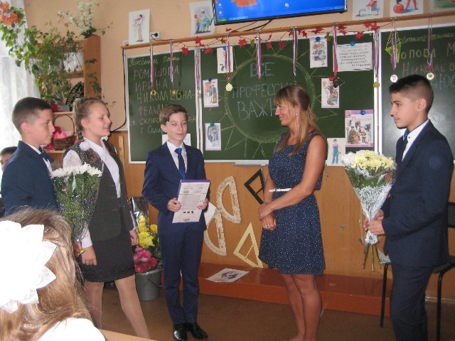 После линейки для учащихся были проведены классные часы на тему «Моя будущая профессия», были приглашены знаменитые и уважаемые люди города: тренер ДЮСШ, капитан гандбольной команды Попова М.Н.и врач-терапевт Платонова Н.М.